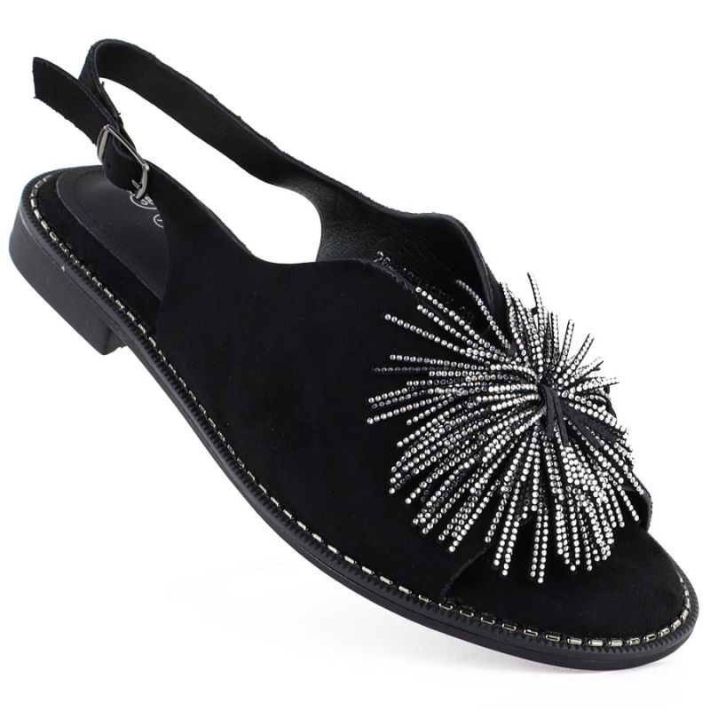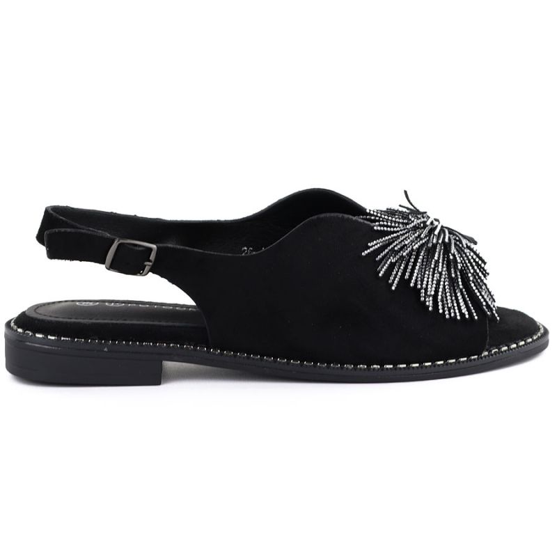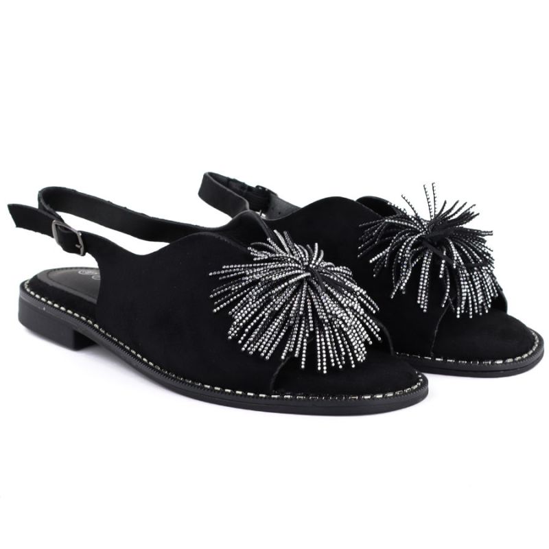 2. Women's closed-heel sandals with sequins, black Potocki 43349