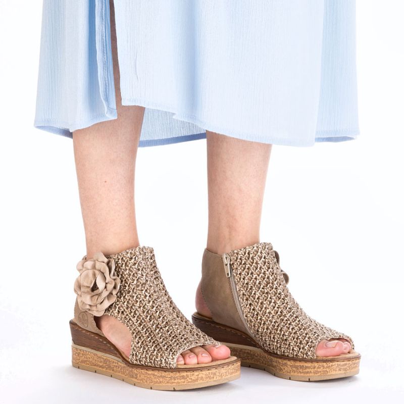 5. Women's comfortable wedge platform sandals, beige, Rieker 63791-60