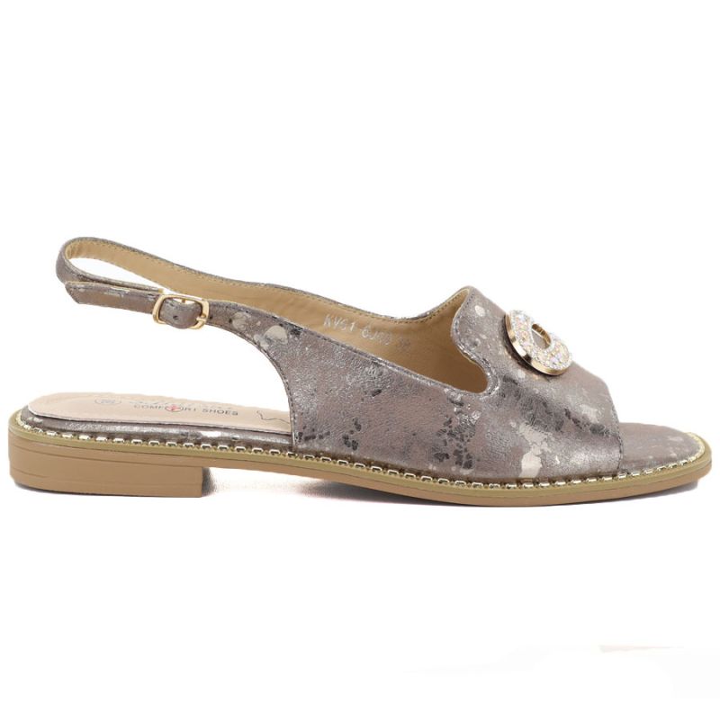 Women's flat sandals with pewter decoration S.Barski 61-6040