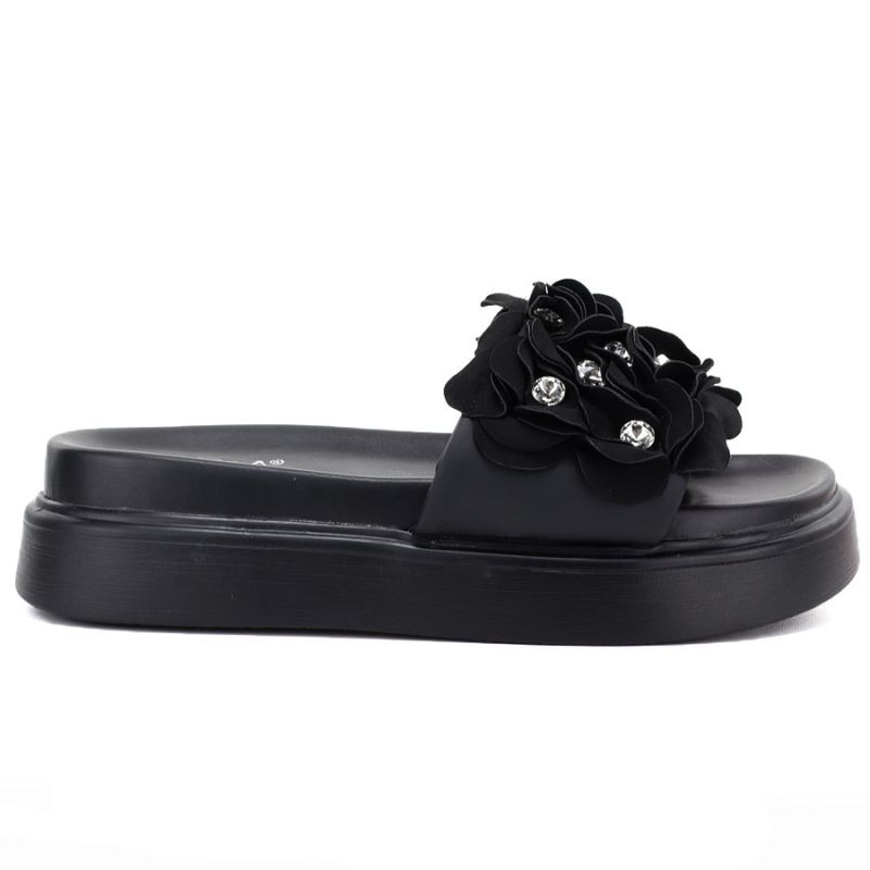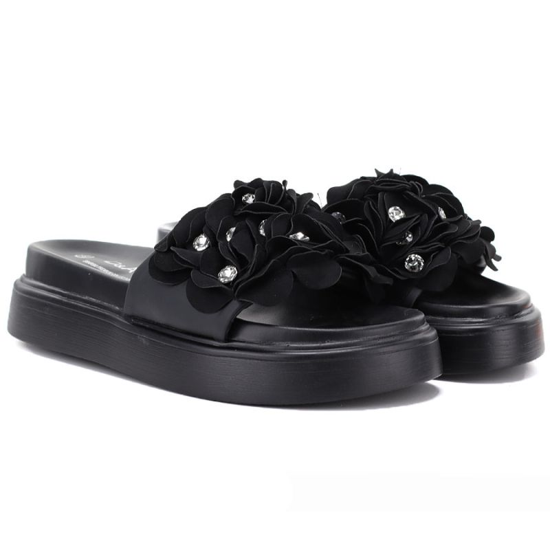 Women's floral platform flip-flops black D&A by S.Barski MR61-9015