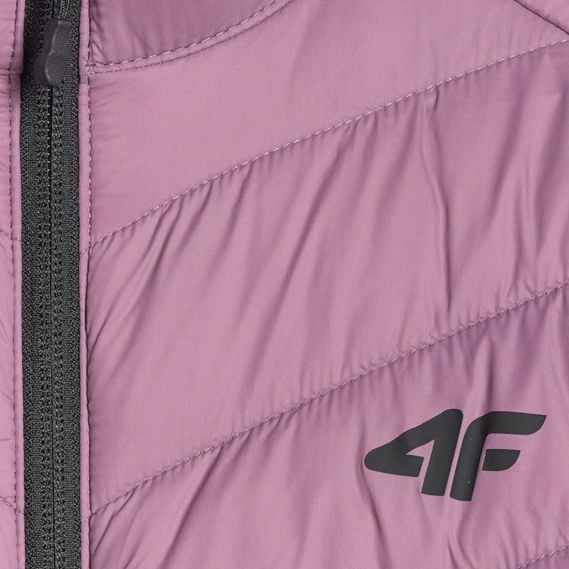 4F Women's Jacket F0855 Purple 4FWSS26TDJAF0855 51S A lightweight women's jacket for cold days, featuring synthetic fill that provides warmth and manages moisture. A water-repellent coating reduces moisture absorption in light rain, while the quilted construction promotes even warmth. A stand-up collar protects against wind, and the slim fit ensures comfort. Elastic cuffs and hem help retain warmth, while zip pockets add everyday functionality. Technical data: Main material: 100% polyester Lining: 100% polyester Filling: 100% polyester Synthetic down - provides warmth and lightness, remaining easy to care for even after contact Hydrophobic impregnation - the outer material limits water absorption, supports protection against light rain Quilted construction - evenly distributes insulation and gives the jacket a dynamic, sporty look Stand-up collar - protects against gusts of wind and cold Tailored cut - emphasizes the feminine silhouette, ensuring comfort of wearing 2 zip pockets - safe storage of small items during everyday activities Elastic cuffs and hem - better fit and protection against cold and wind