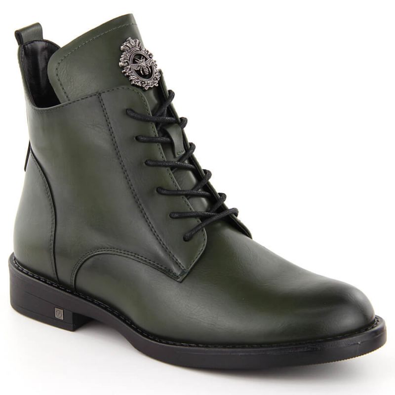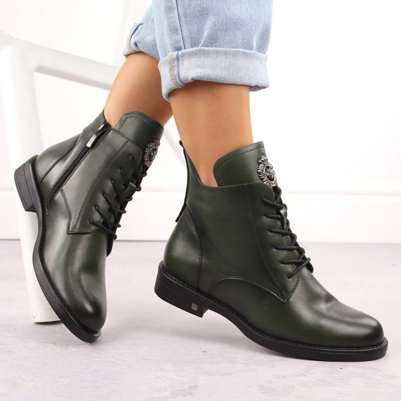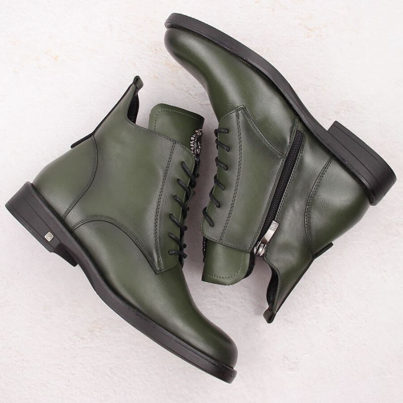 Women's lace-up and zippered green ankle boots Potocki SZ12179