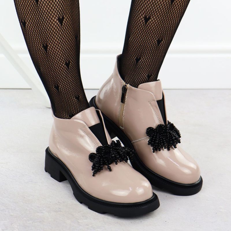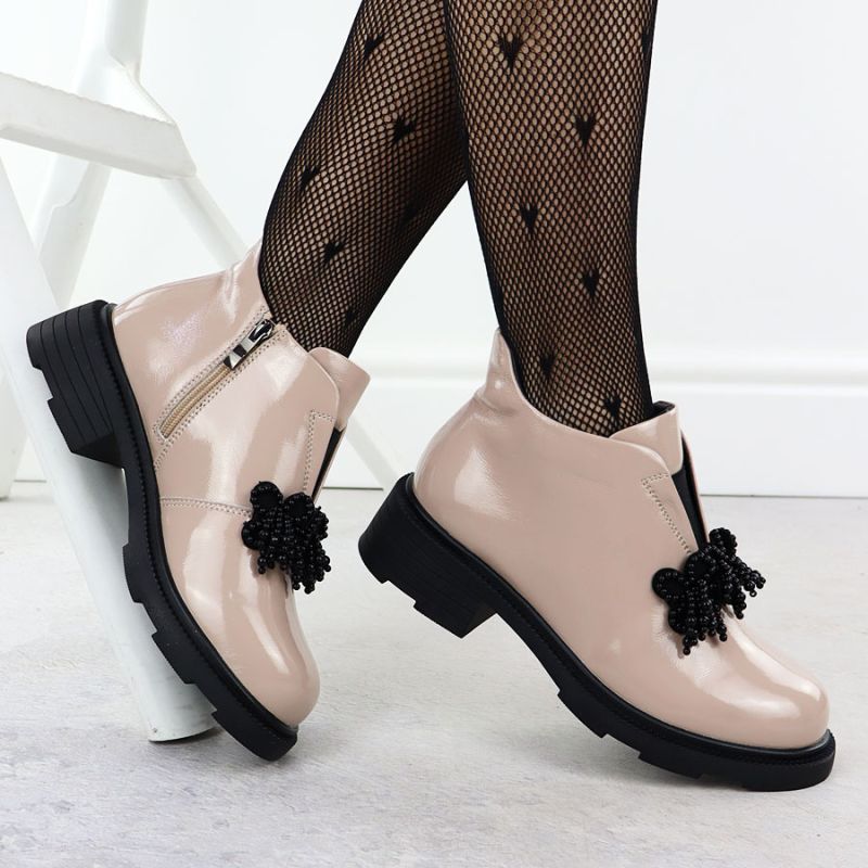 Women's leather ankle boots with decoration, patent beige Filippo DBT6370