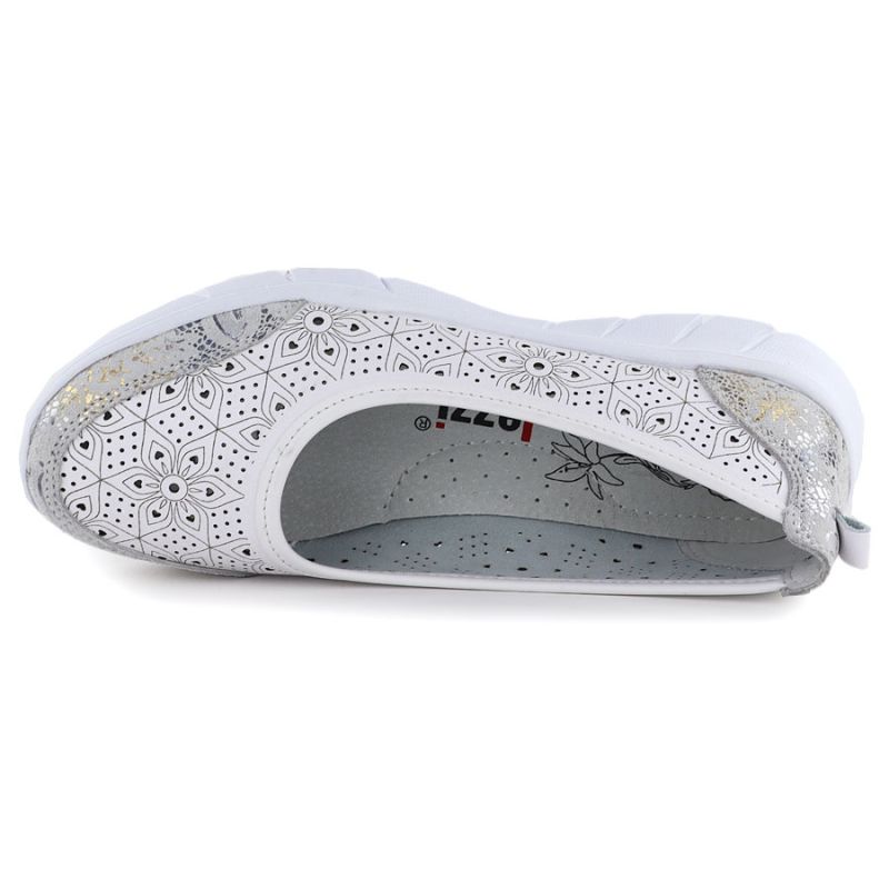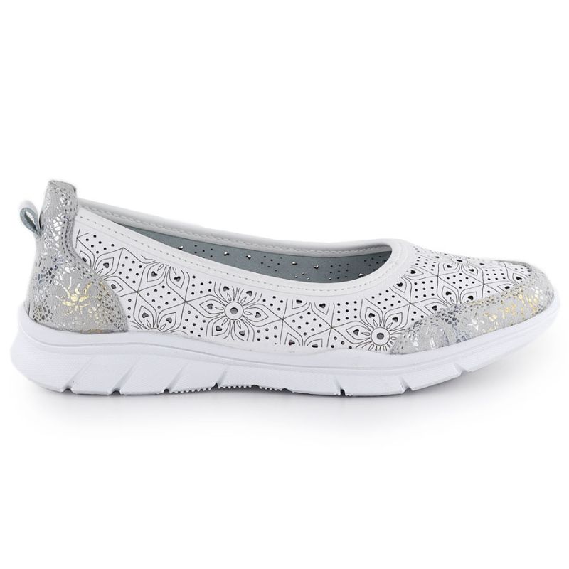 Women's leather ballet flats with openwork pattern, white Jezzi 9997