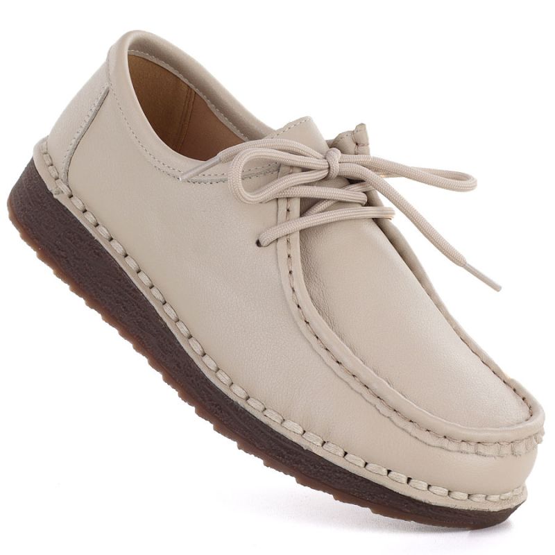 Women's leather lace-up moccasins, beige, Artiker 58C1519