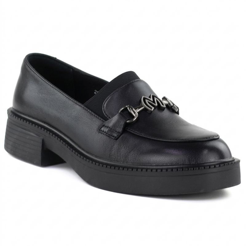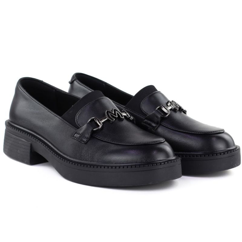 Women's leather lords moccasins with thick soles, black Vinceza 39985