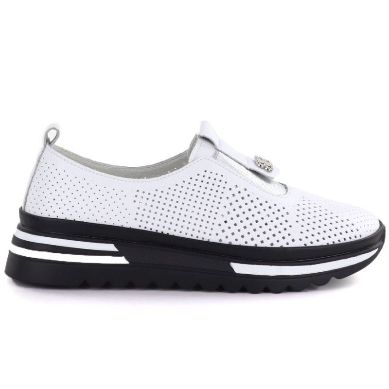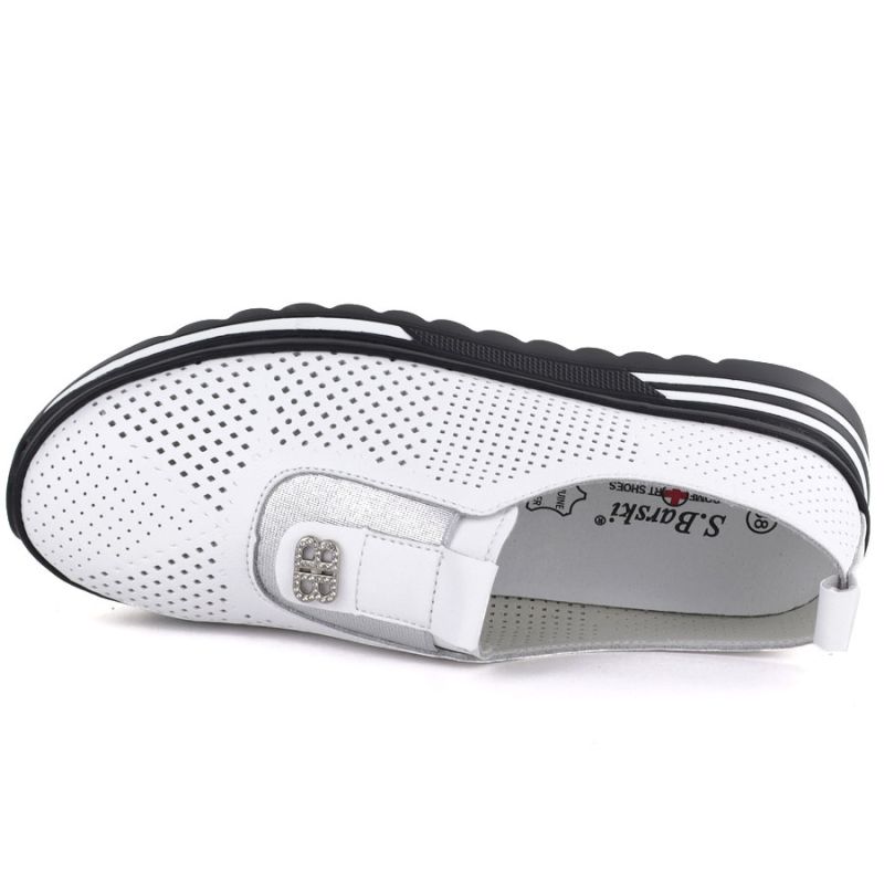 Women's leather openwork platform shoes, white, S.Barski 7092