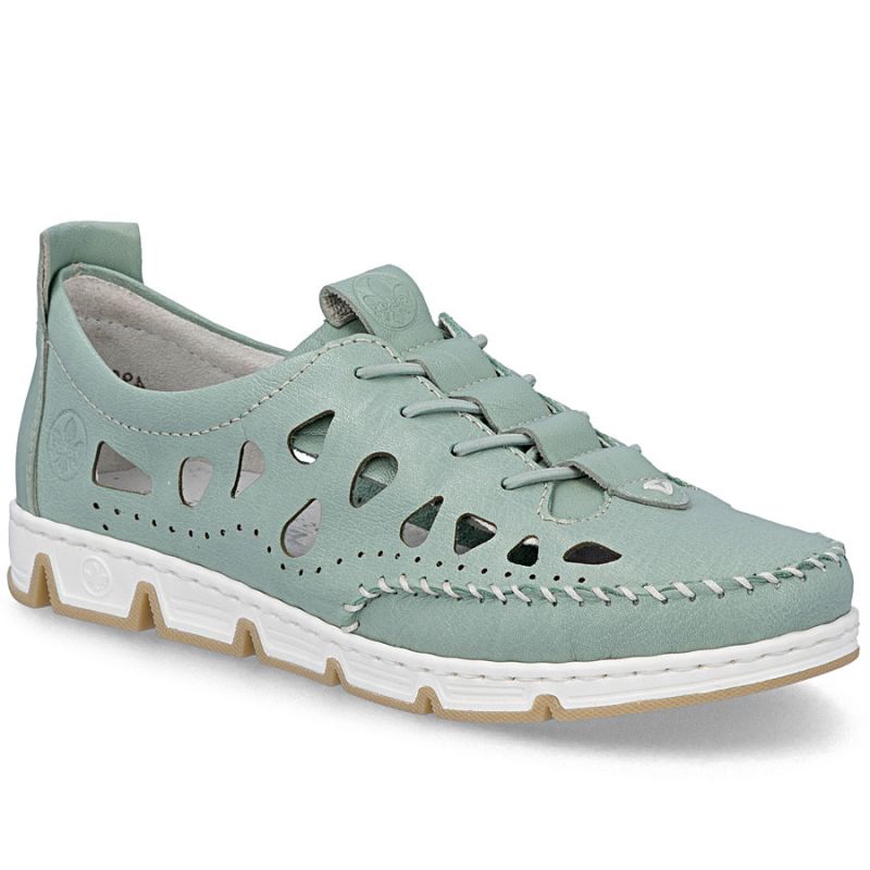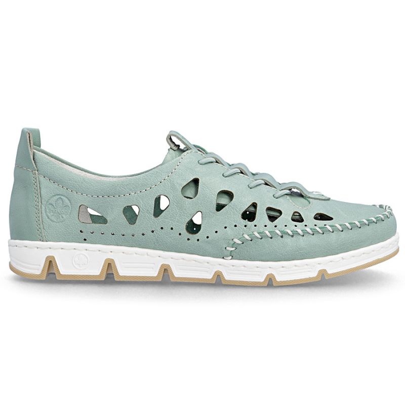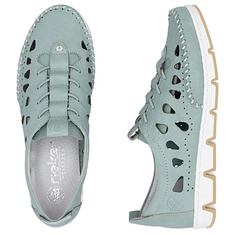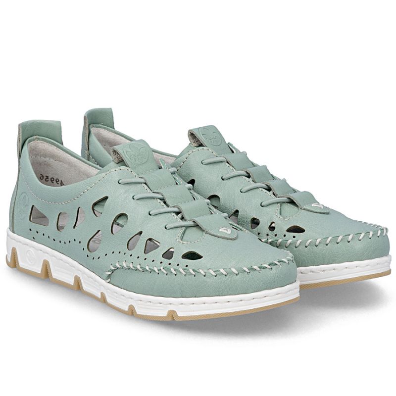 Women's leather openwork shoes green Rieker 49956-52