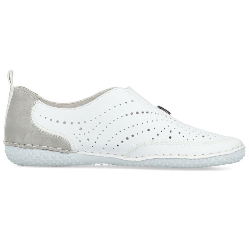 Women's leather openwork slip-on shoes, white Rieker 43663-80