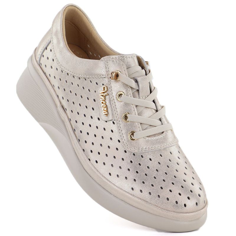 Women's leather openwork wedge shoes, gold, Vinceza 79603