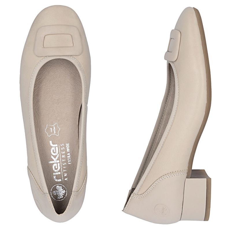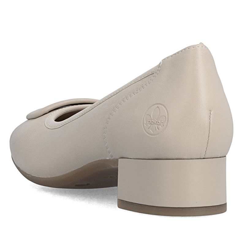Women's leather pumps with low heels, beige, Rieker 43453-62