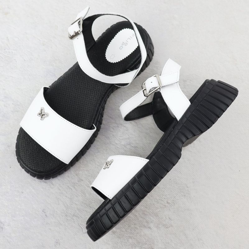 Women's leather sandals with a thick sole and a butterfly, white Filippo DS6811