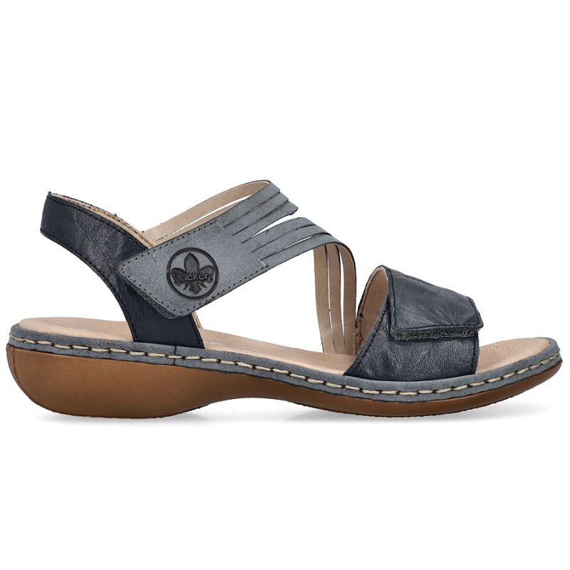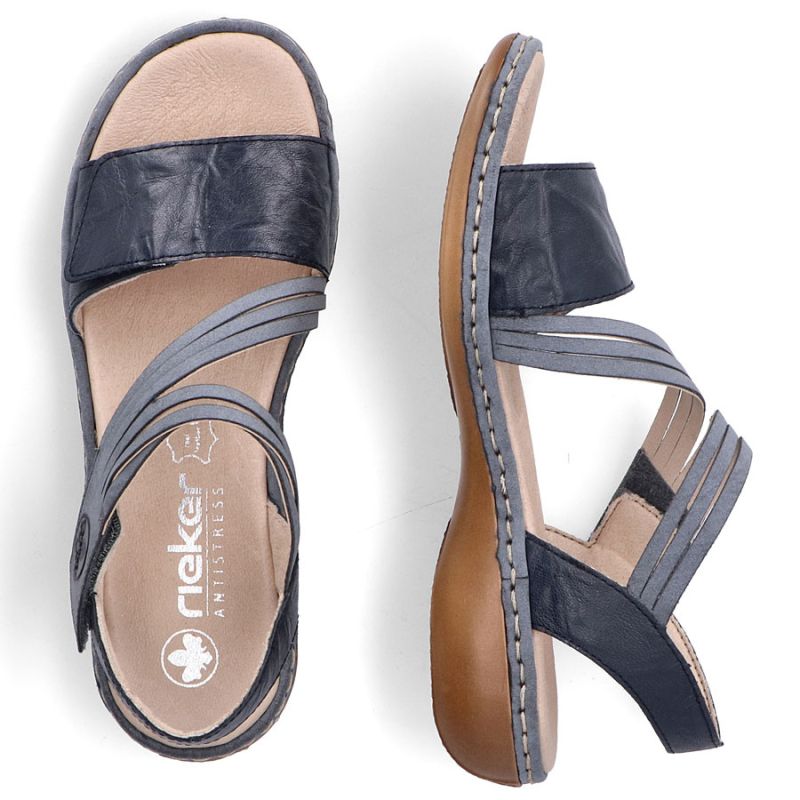 Women's leather sandals with velcro, navy blue, Rieker 65964-12