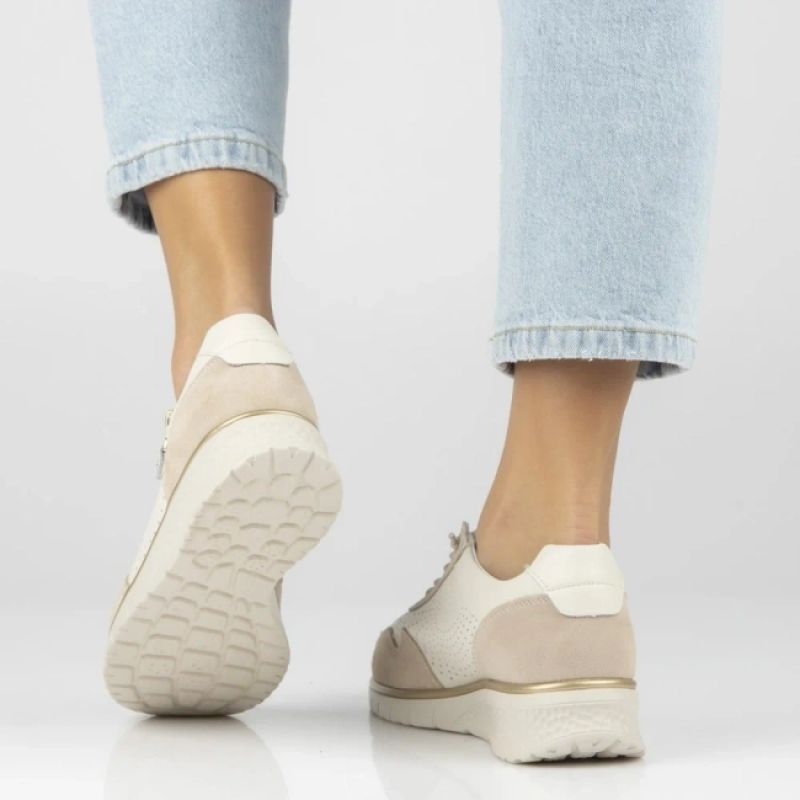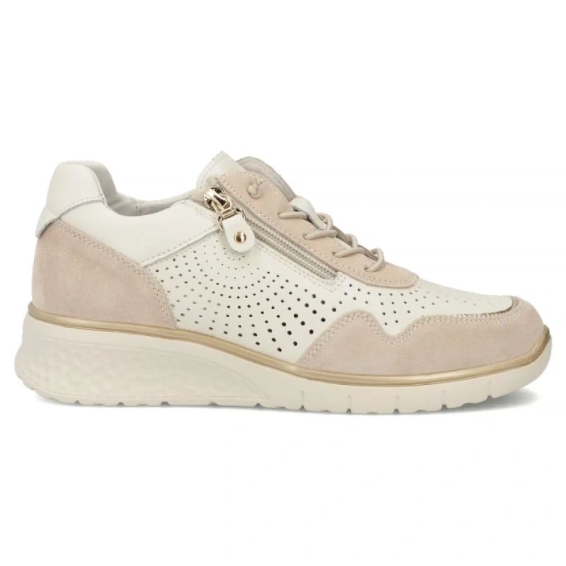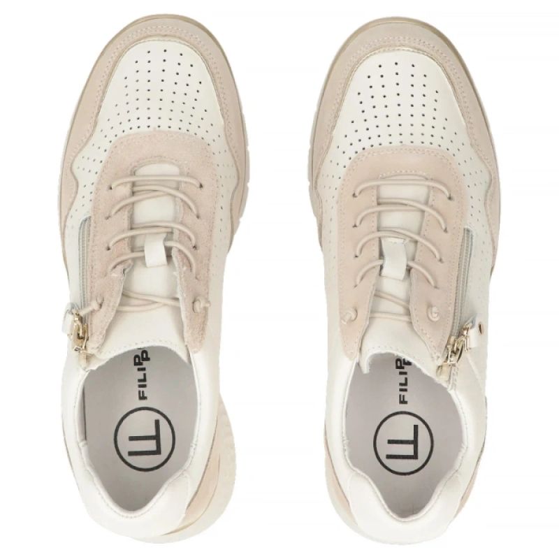 Women's leather sneakers with openwork wedges, beige Filippo DP7605