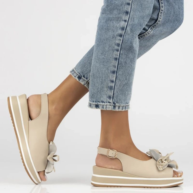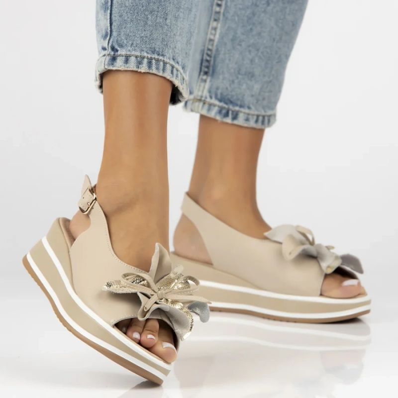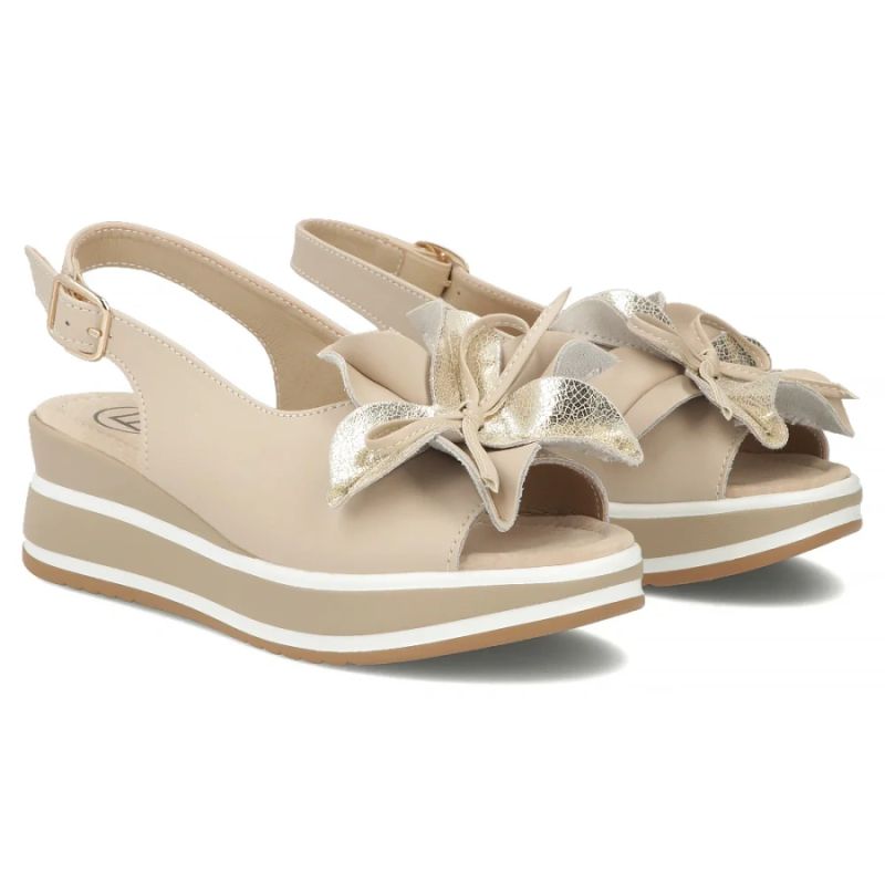 Women's leather wedge sandals beige Filippo DS7045/26