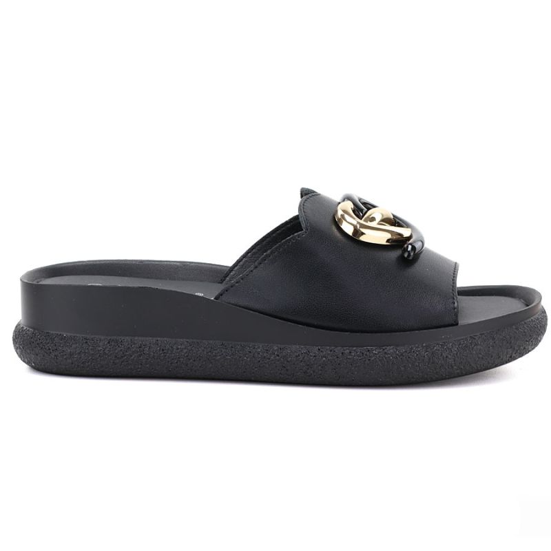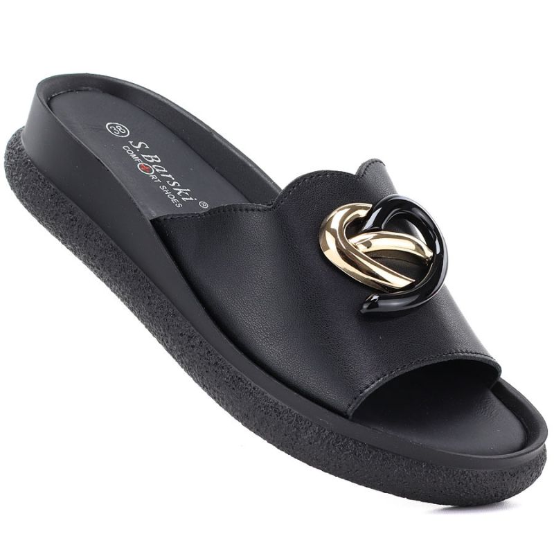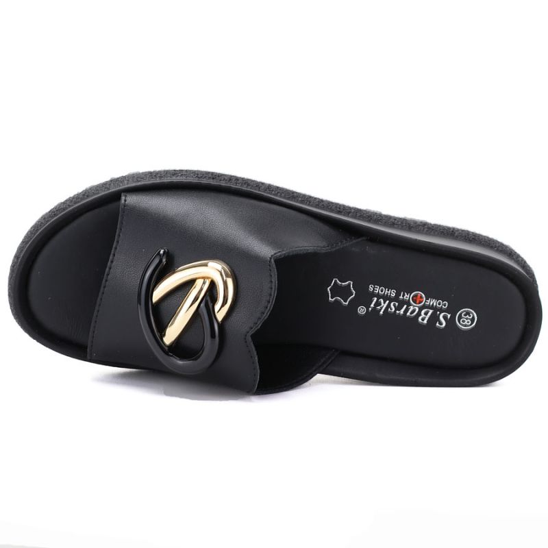 Women's leather wedge sandals, black, S.Barski KV61-6046