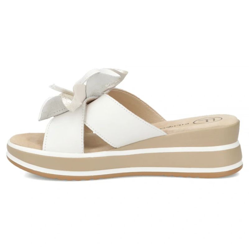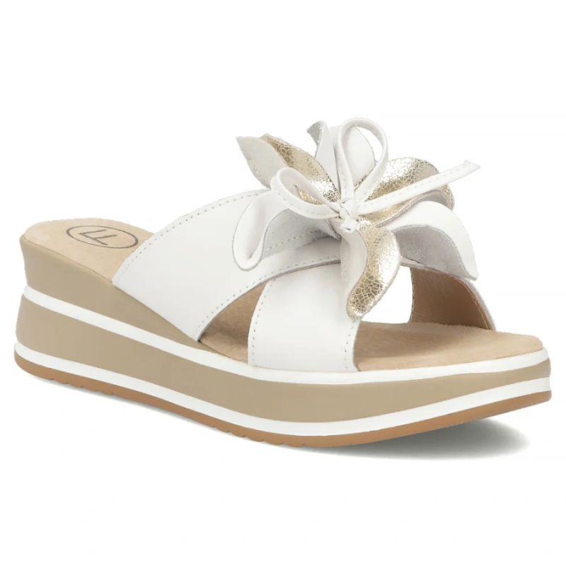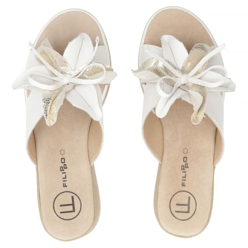 Women's leather wedge sandals with a flower, white Filippo DK7636