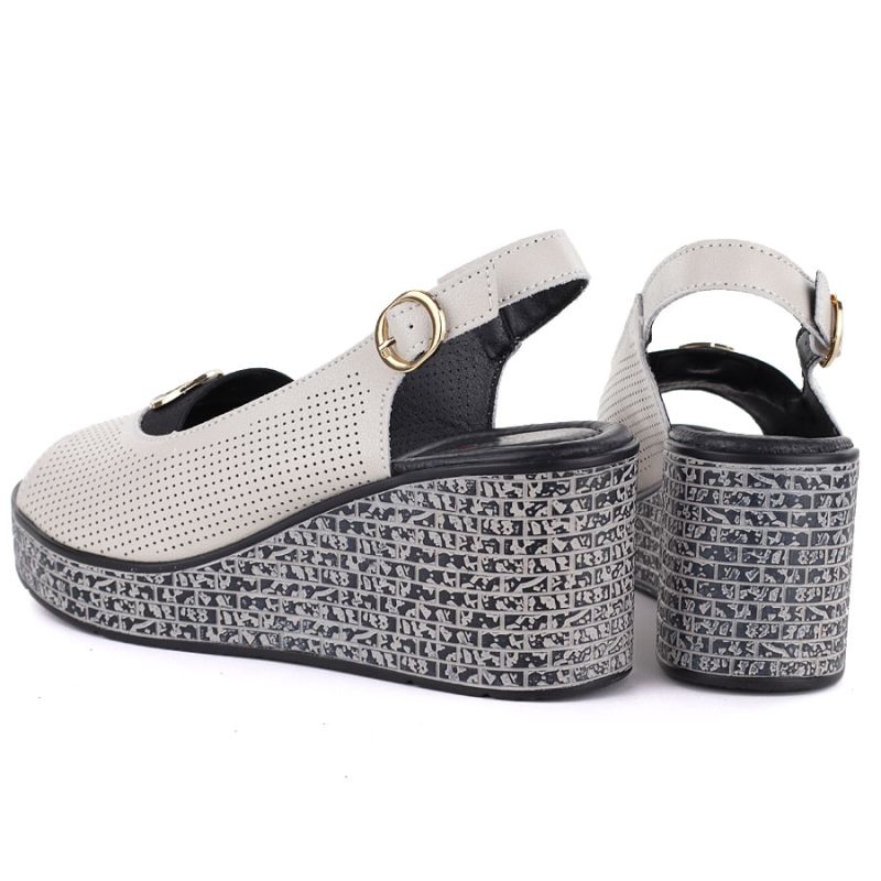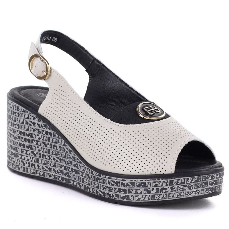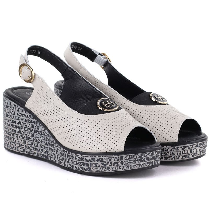 Women's leather wedge sandals with openwork beige S.Barski 7010