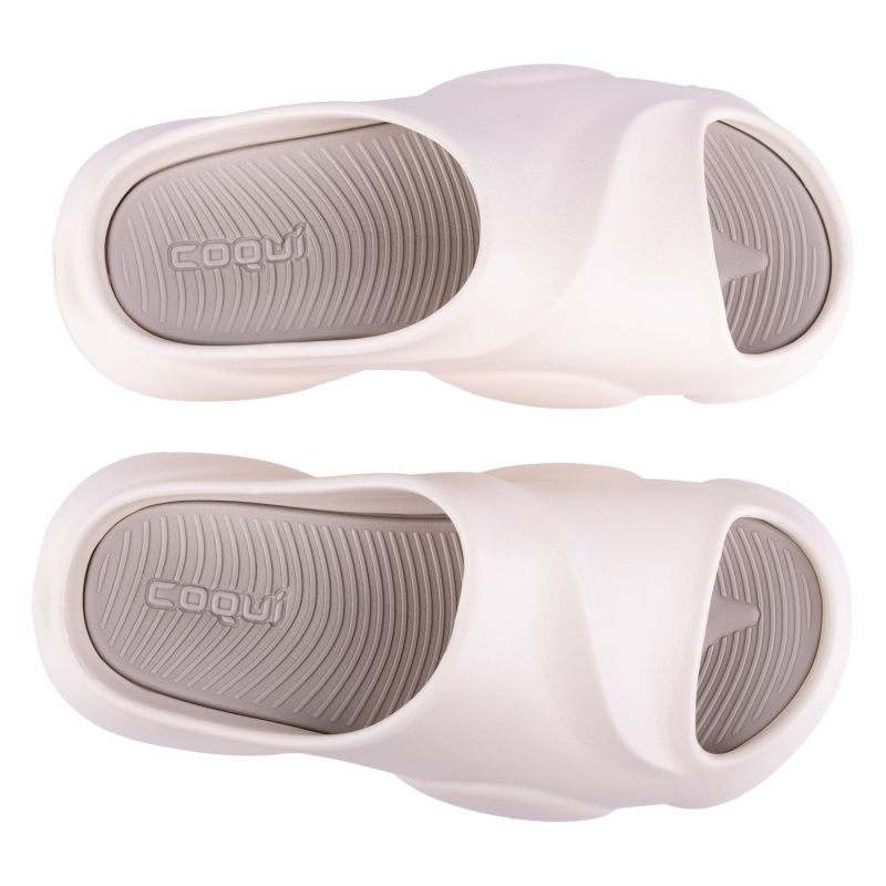 CoquiAir material (the highest class of EVA materials) Cushioning Antibacterial surface Anti-slip and non-marking sole Futuristic design Wide strap Light and easy-to-clean material