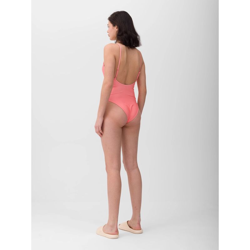 The 4FWSS24USWSF053 4F women's swimsuit offers comfort and style for summer days by the water or pool. This classic swimsuit features thin straps and a rounded neckline that flatter the figure. The open back adds character. Crafted from stretchy material, it allows for complete freedom of movement during activity. Furthermore, the swimsuit is designed in accordance with the Wear Fair program, which aims to protect the environment through more sustainable production.