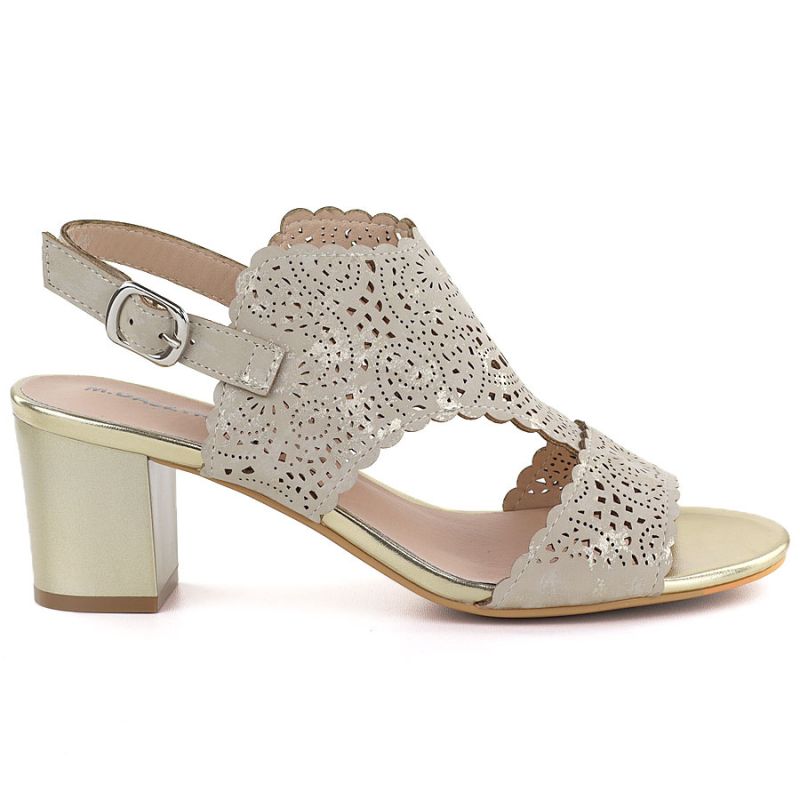 Women's openwork beige heeled sandals M.Daszyński MR1954-2