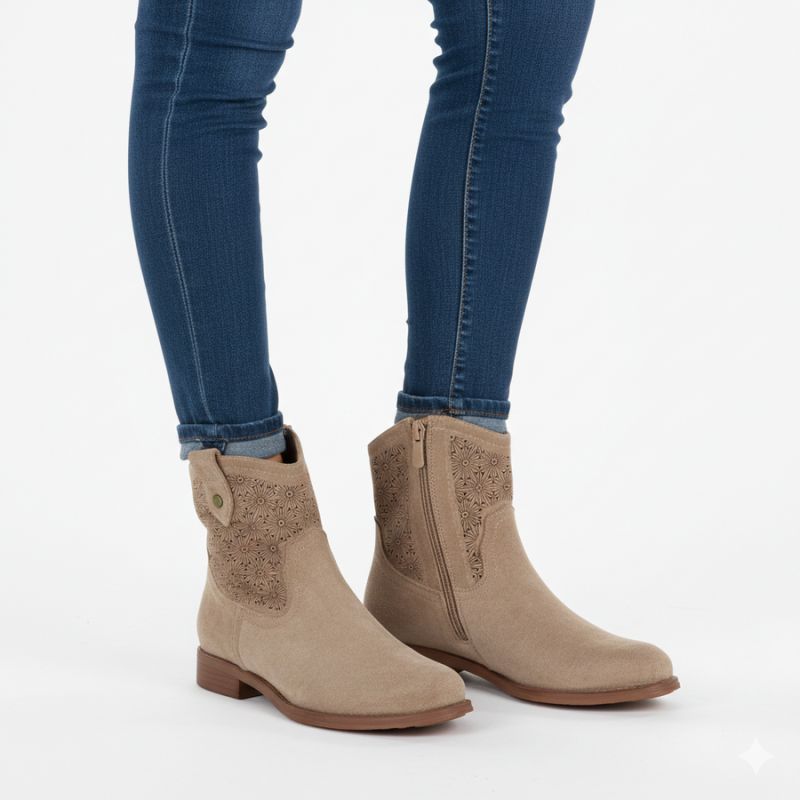 Women's openwork cowboy boots, suede, beige, S.Barski HY61-8025