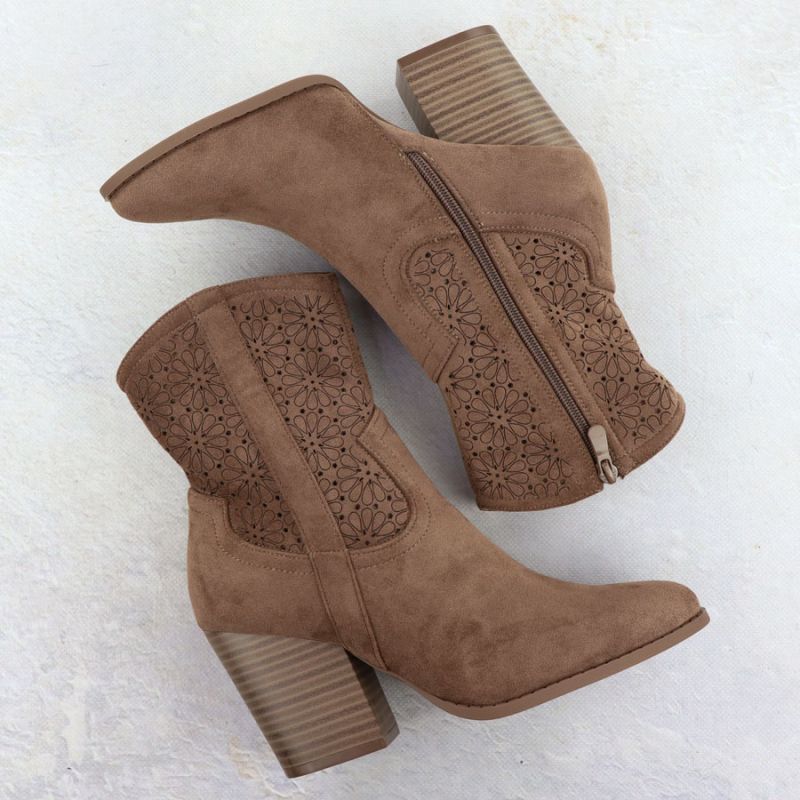 Women's openwork cowboy boots, suede, brown, S.Barski HY52-514
