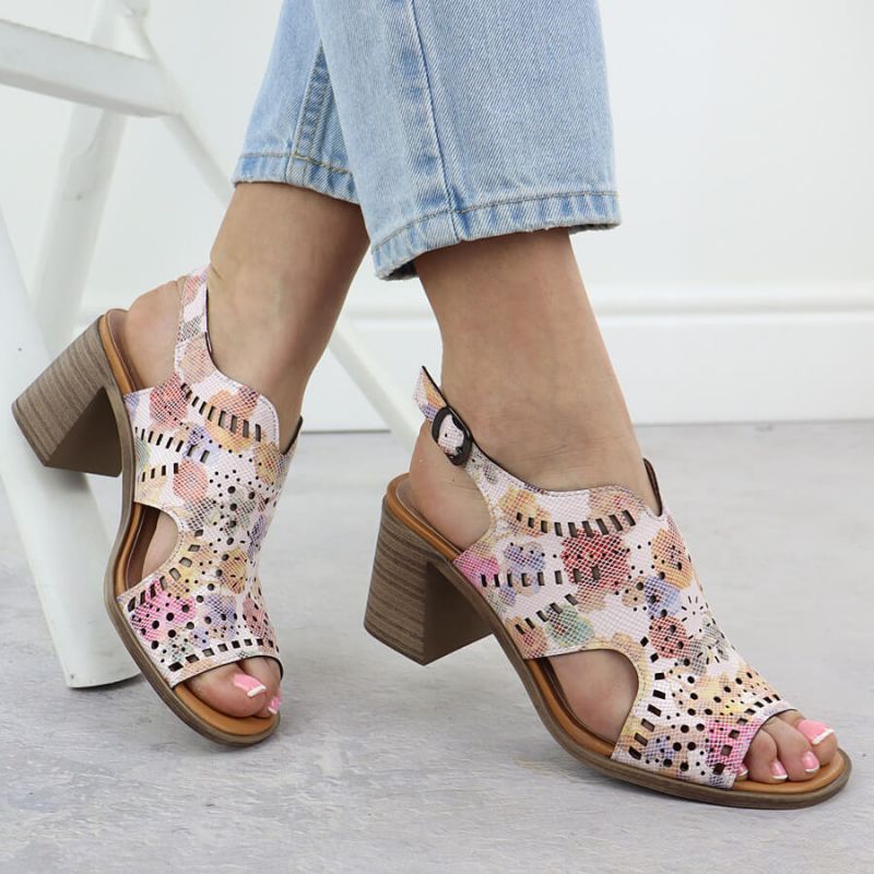 Women's openwork floral high-heeled sandals Jezzi 24125