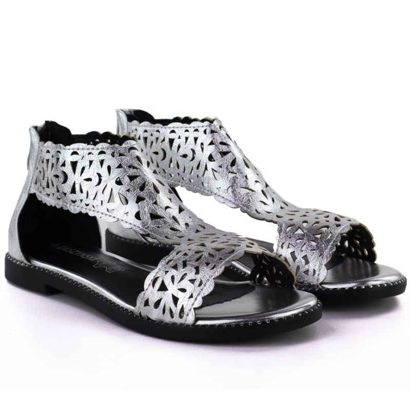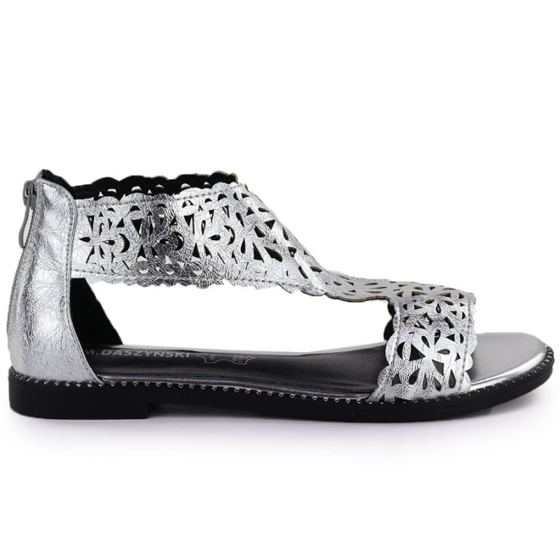 Women's openwork silver sandals M.Daszyński MR24148-2
