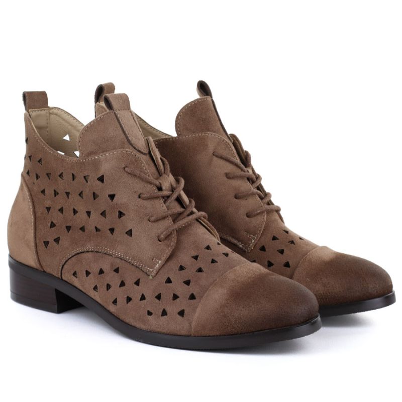 4. Women's openwork suede ankle boots, dark beige, Filippo 58620