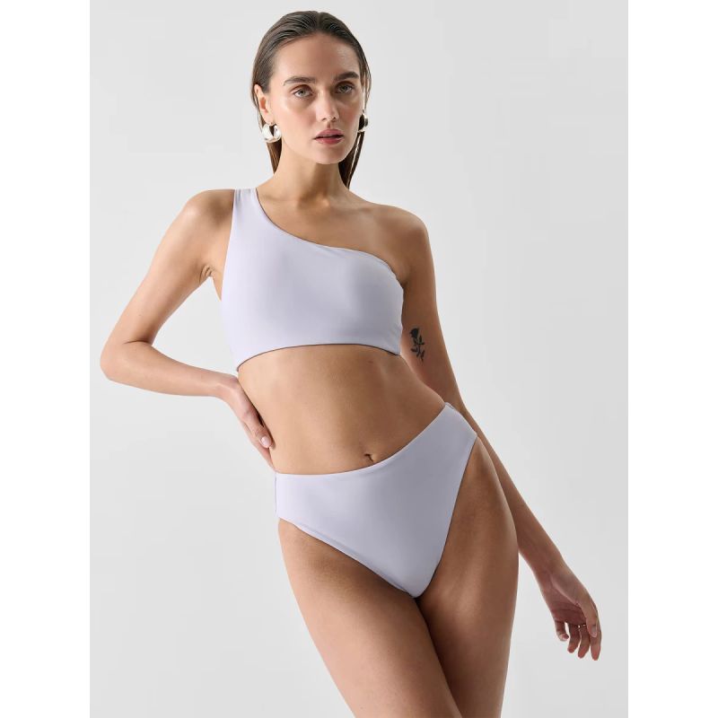 Made of soft, stretchy synthetic fabric, this bikini top features a unique one-shoulder design. It features removable pads for personalized support. The open-back design adds a sleek aesthetic, and smooth padding ensures a comfortable fit.