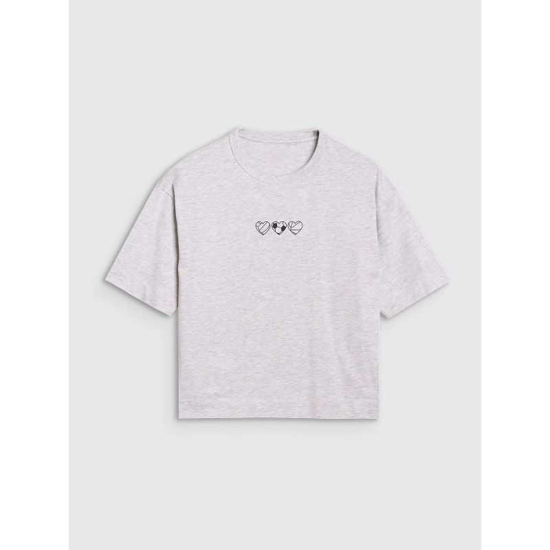 - Stylish Print: The front of the T-shirt features a visible print with hearts, which adds charm and a feminine character.