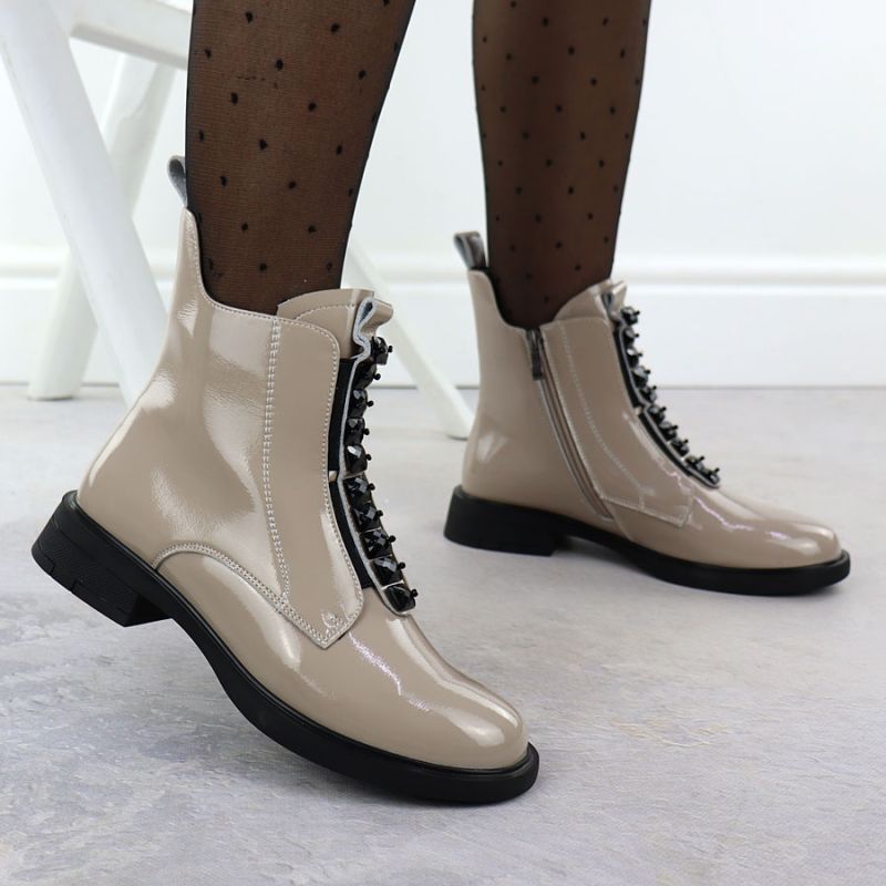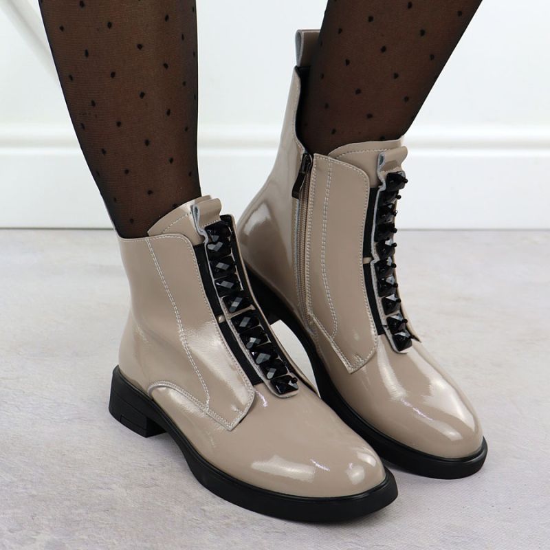 Women's patent leather ankle boots in beige D&A S.Barski Premium Collection MR52-108