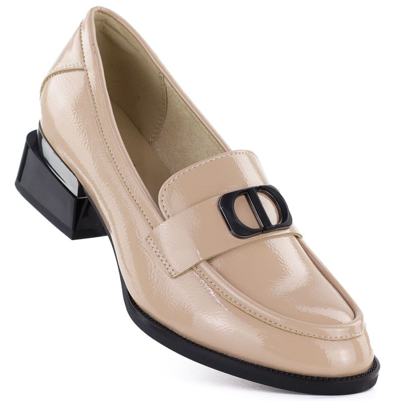 Women's patent leather shoes with a decorative heel, beige, Vinceza 58638