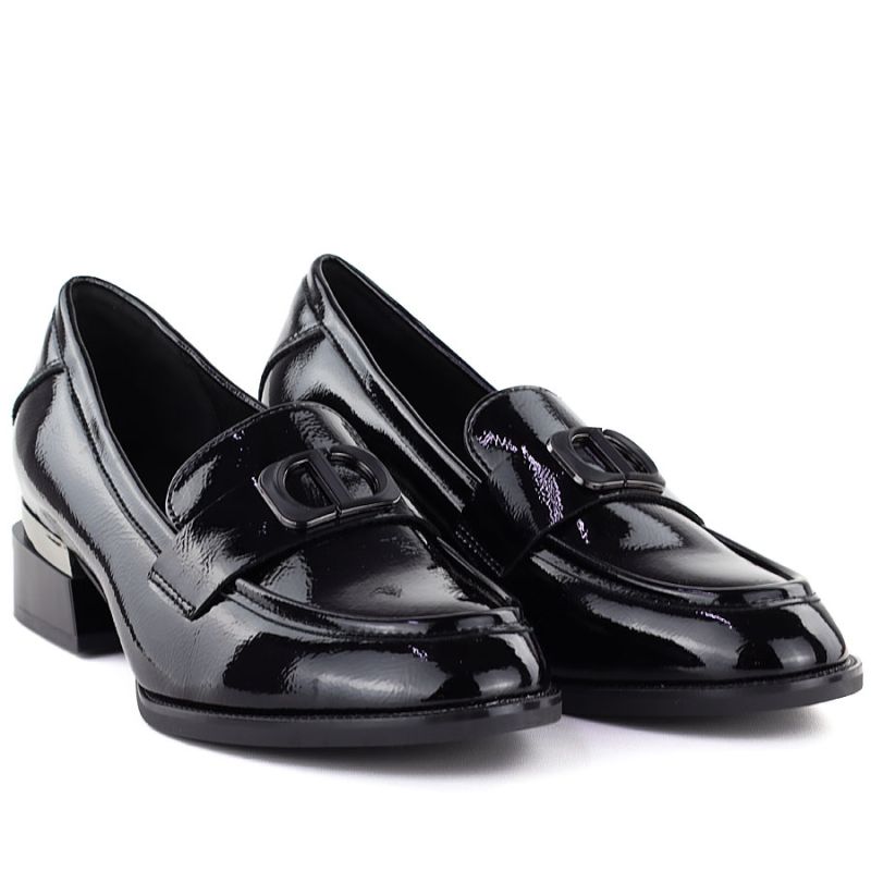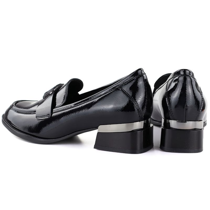 Women's patent leather shoes with a decorative heel, black Vinceza 58638