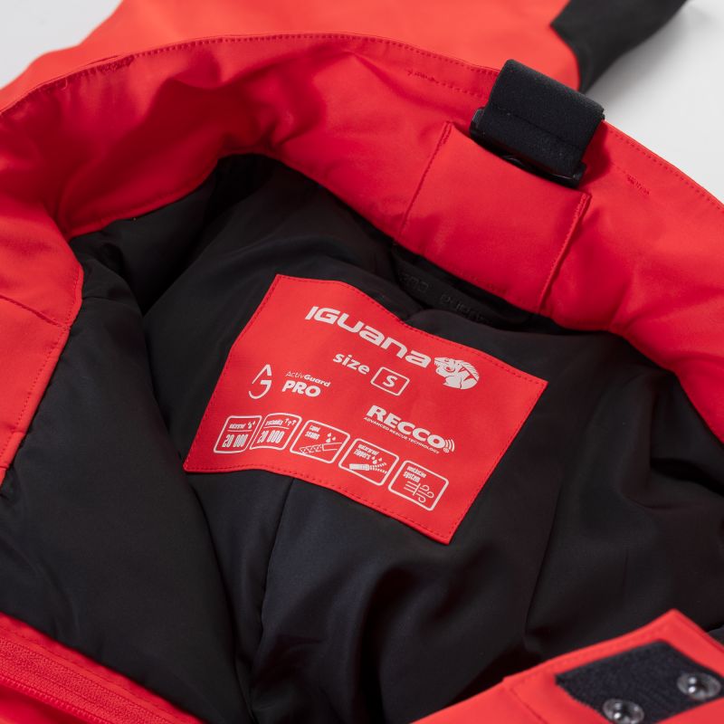 SKI PANTS SIZE: S-XXL MATERIAL COMPOSITION: OUTER MATERIAL: 100% RECYCLED POLYESTER LINING: 100% RECYCLED POLYESTER FILLING: 50% RECYCLED POLYESTER, 50% POLYESTER SPECIFICATIONS: – WATER RESISTANCE: 20,000 mm H₂O – BREATHABILITY: 20,000 g/m²/24h – ACTIVGUARD PRO TECHNOLOGY – RECCO SYSTEM – WIND PROTECTION – 2-LAYER LAMINATION – TAPED SEAMS – DWR COATING – WATERPROOF ZIPPERS – SBS® ZIPPER – ZIPPERS AT THE BOTTOM LEG PARTS – SNOW GARNISH IN THE LEG – INTERNAL POCKET CERTIFICATE: OEKO-TEX