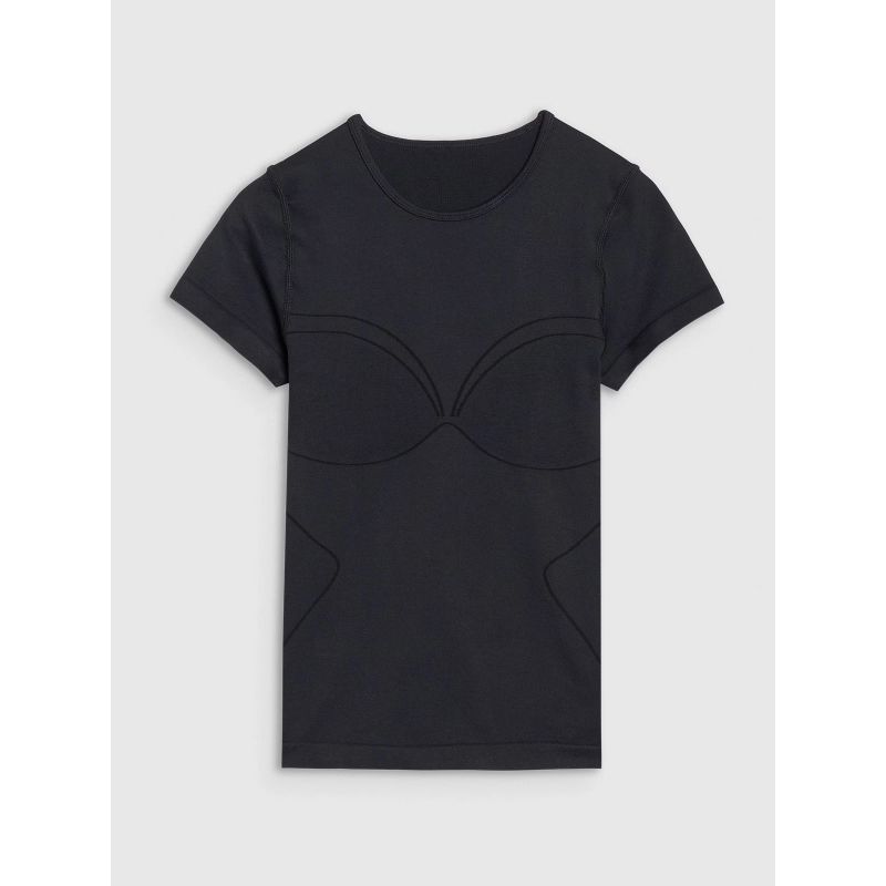 This women's yoga top is designed to support complete concentration and fluid movement during your practice. Stretchy, quick-drying fabric hugs your figure, ensuring comfort in every pose—from warm-up to cool-down. The slim fit subtly flatters your curves, while the interlock fabric , smooth on both sides, ensures softness and durability. 4FDry technology helps wick away moisture, while the seamless construction minimizes the risk of chafing. Perforated back panels enhance ventilation, and decorative draping adds a feminine touch. This style is perfect for yoga, Pilates, and other leisurely activities.