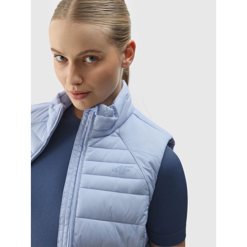 This women's vest is filled with recycled synthetic down, features a stand-up collar, and a lightweight construction, making it suitable for everyday activities as well as warmer days transitioning from active to active. Its lightweight design means it's lightweight enough to be worn during exercise, while also providing an effective insulating layer, especially under waterproof jackets. It not only protects against the cold but also works well as a layering piece. Easy to put on and store, it has a slim fit that hugs the body and a regular hip length.