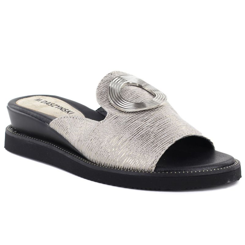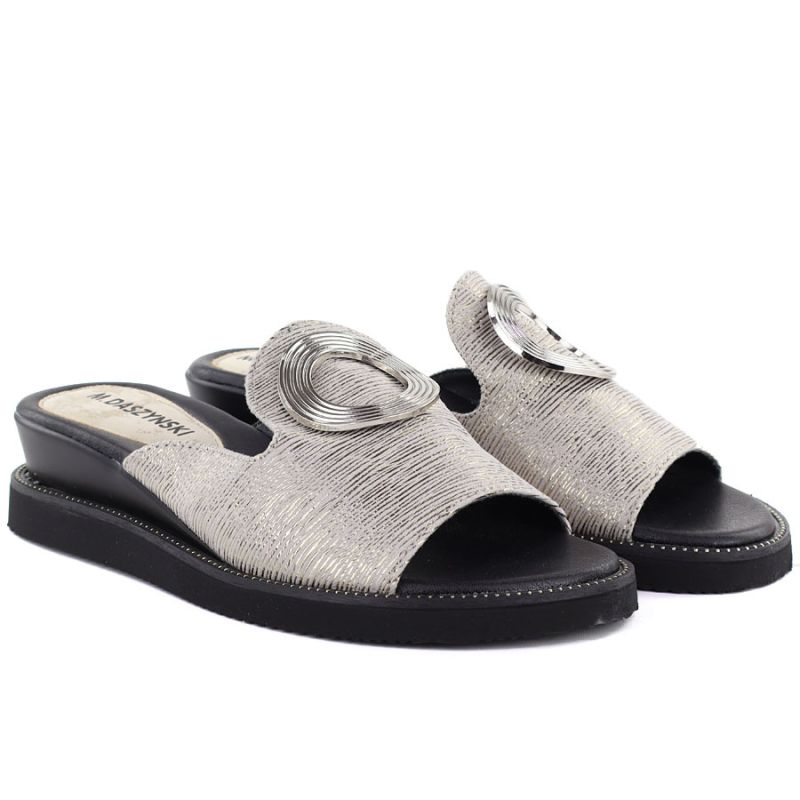 Women's silver low wedge flip-flops M.Daszyński MR2267-7