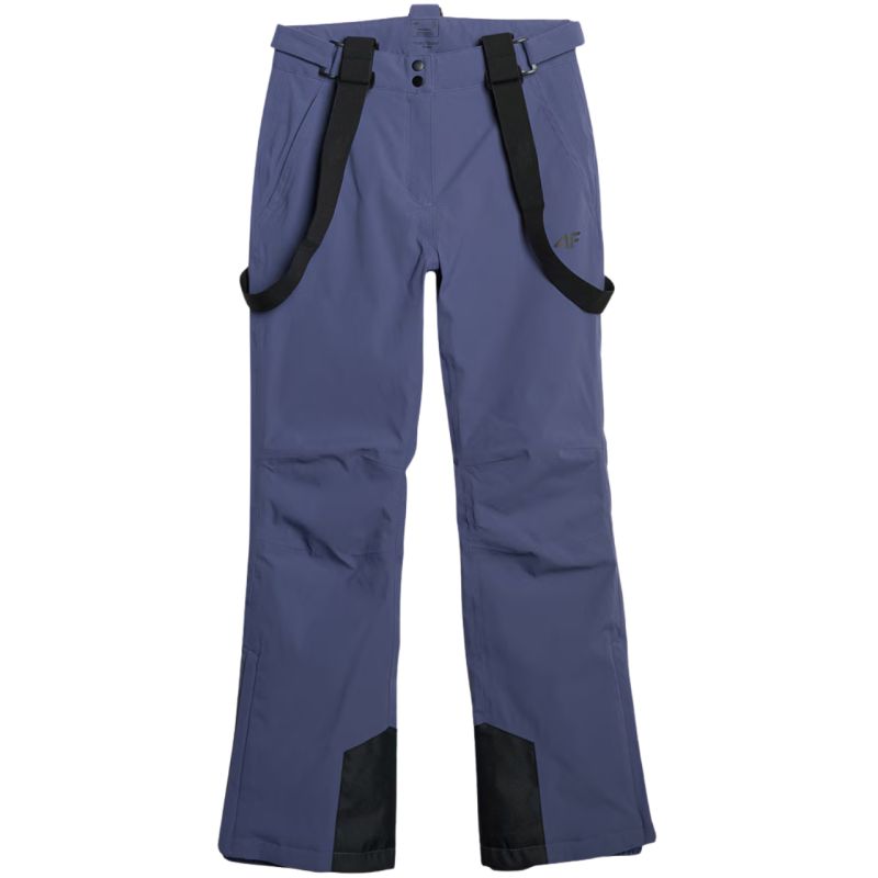 Women's ski pants 4F FNK F0944 denim 4FWAW25TFTRF0944 32S Women's ski pants 4F will provide freedom and protection not only on the slopes. Technical data: Main material: 100% polyester Additional material: 100% polyester Lining: 100% polyester Filling: 100% polyester (polyester insulation) Membrane waterproofness level: 5,000 mm Membrane breathability level: 3,000 g NeoDry 5000/3000 membrane - protects against light rain and supports the breathability of the material All seams taped - additional protection against moisture penetration Hydrophobic finish - limits water absorption by the outer layer of the material Polyester insulation - provides warmth without additional weight Inner snow gaiters - prevents snow from getting inside Detachable, adjustable suspenders - allow for individual adjustment and comfort of wearing Velcro adjustable waist - easily adapts to the figure and ensures stability Reinforcements at the bottom of the legs - increase the durability of the material in key areas· Zippers on the sides of the legs - make it easier to put the pants on over ski boots· 2 side pockets with zippers - for small items you want to always have at hand· Profiled knee zone - better mobility while skiing· High waist - protects the back and increases thermal comfort on the slope· Smooth lining - easily moves over thermal clothing· Reflective elements - improve visibility in low light· Regular fit - guarantees comfort and freedom of movement· Ankle length - full leg coverage, ideal for winter conditions