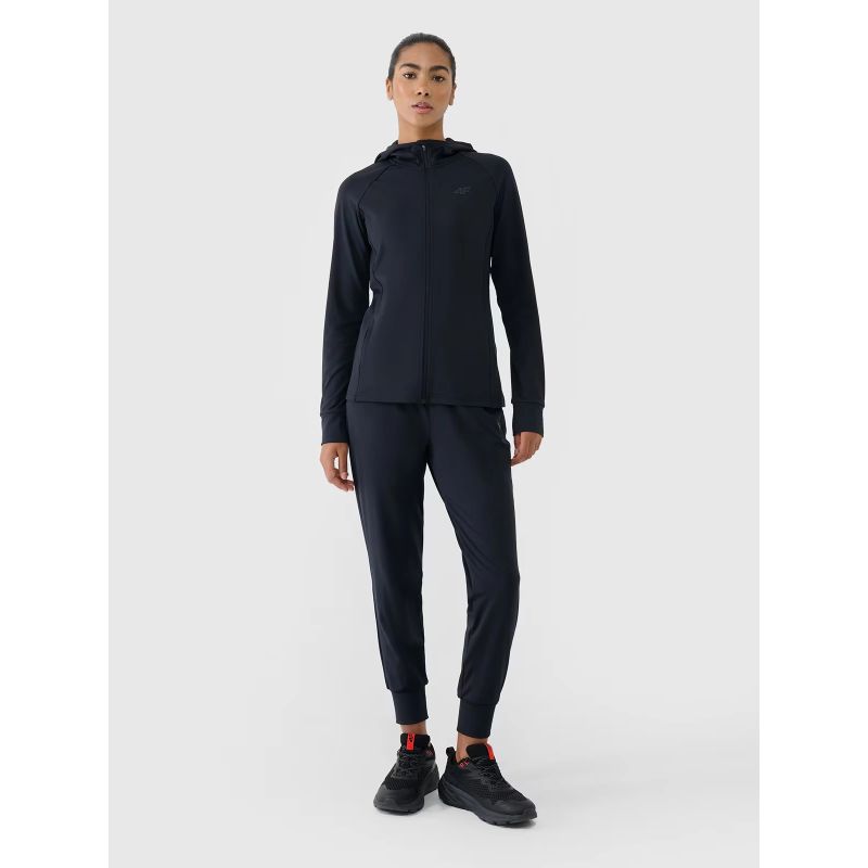 The 4F women's hooded sweatshirt is ideal for workouts of varying intensity. Quick-drying 4FDry fibers wick away moisture, while the brushed 4FWarm lining ensures thermal comfort. Raglan sleeves and a slim fit guarantee complete freedom of movement, while practical side pockets and an adjustable hood enhance the sweatshirt's functionality.