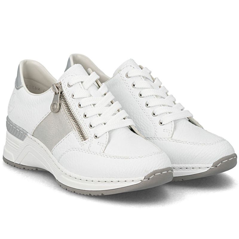 Women's sneakers with zipper, white, Rieker N4322-80