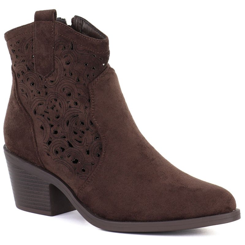Women's suede ankle boots with openwork heel, brown, S.Barski HY61-8012