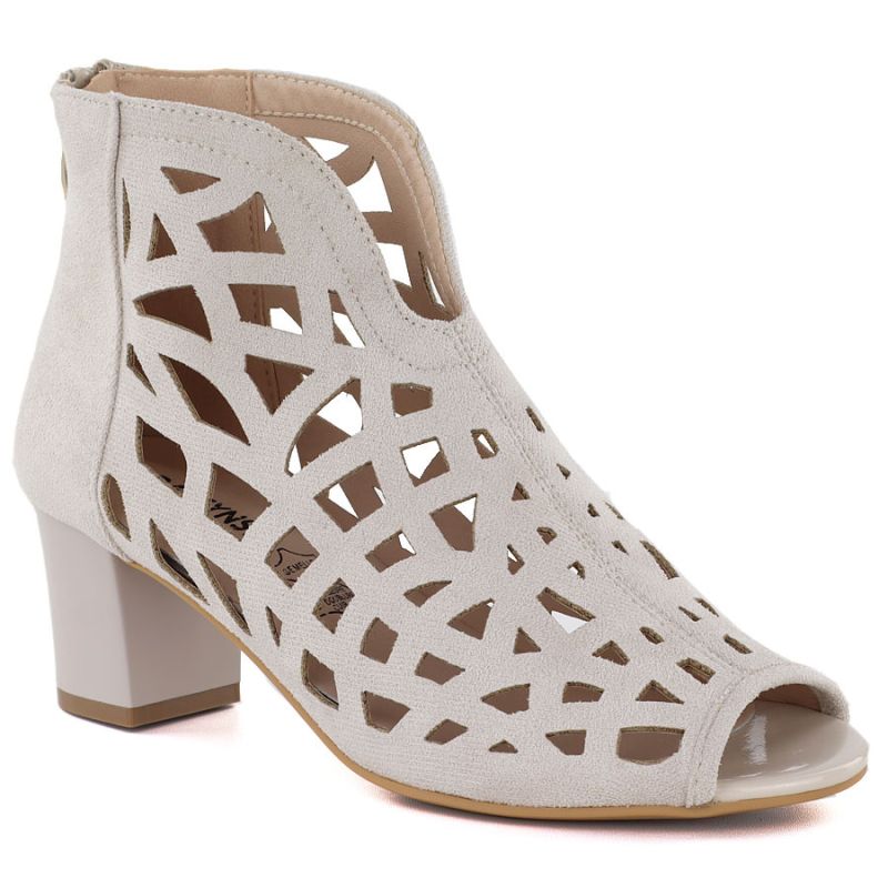 Women's suede ankle boots with openwork, open toe, beige M.Daszyński MR1954-15