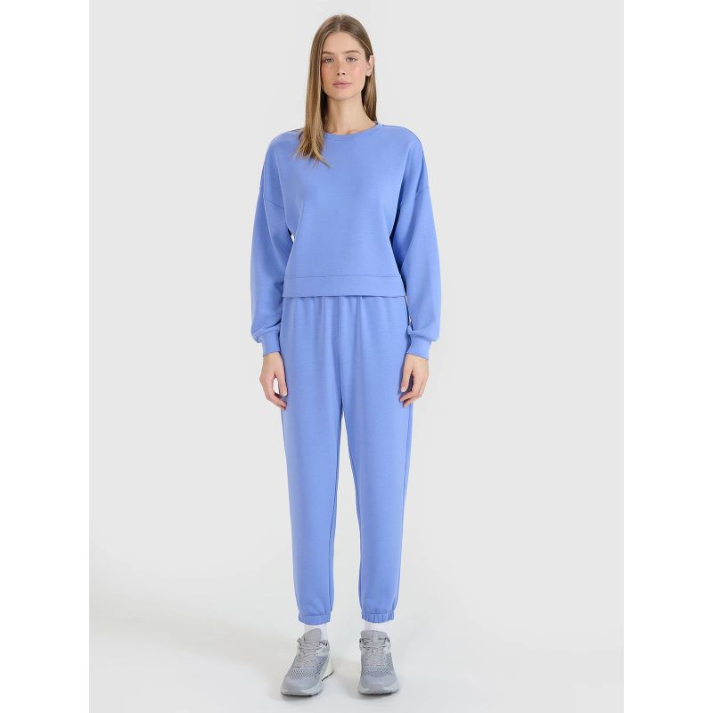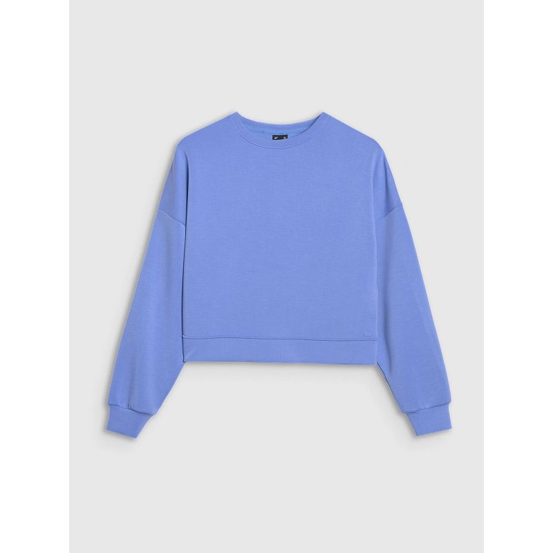 The 4F women's sweatshirt is a must-have in the wardrobe of every woman who values comfort , functionality , and style . Thanks to its stretchy interlock fabric and fashionable cut , it will complement a variety of everyday outfits . It's perfect before or after a workout , but also as a casual option for everyday activities.