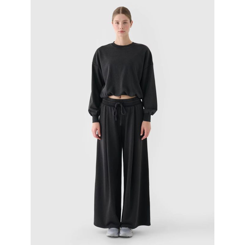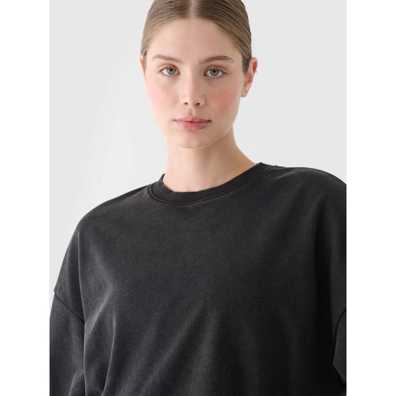 This women's open-front sweatshirt is made of 75% cotton, making it soft, durable, and pleasant to the touch. The addition of polyester (25%) ensures the fabric maintains its shape and is durable enough to wear for many seasons. The crew neckline is finished with light ribbed detailing. Elastic cuffs with ribbed cuffs. Classic fit without pockets. Pulls on over the head. Dropped, flowing sleeves add a relaxed fit. Gathered hem with elasticated waistband.