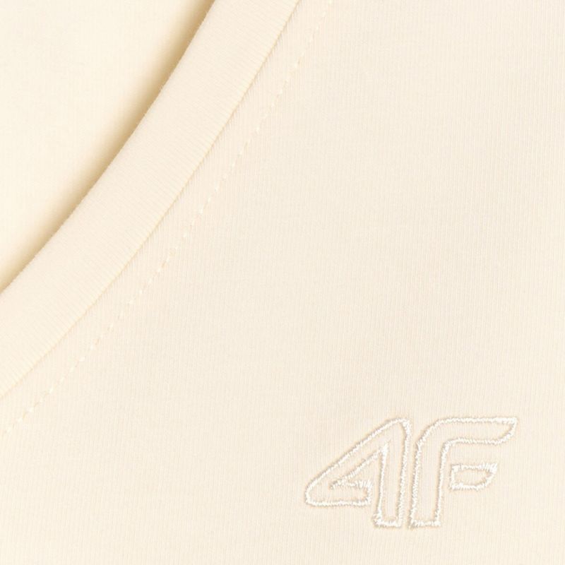 4F Women's T-shirt F2969 Cream 4FWAW25TTSHF2969 12S This 4F women's T-shirt, in the spirit of minimalism, is an indispensable part of everyday styling. Technical data: Main material: 95% cotton, 5% elastane Weight: 180 gsm Cut: slim, which adapts to the figure Made mostly of cotton Stretchy material thanks to the addition of elastane Solid colors to match many styles Soft-touch single jersey fabric with a smooth surface V-neck