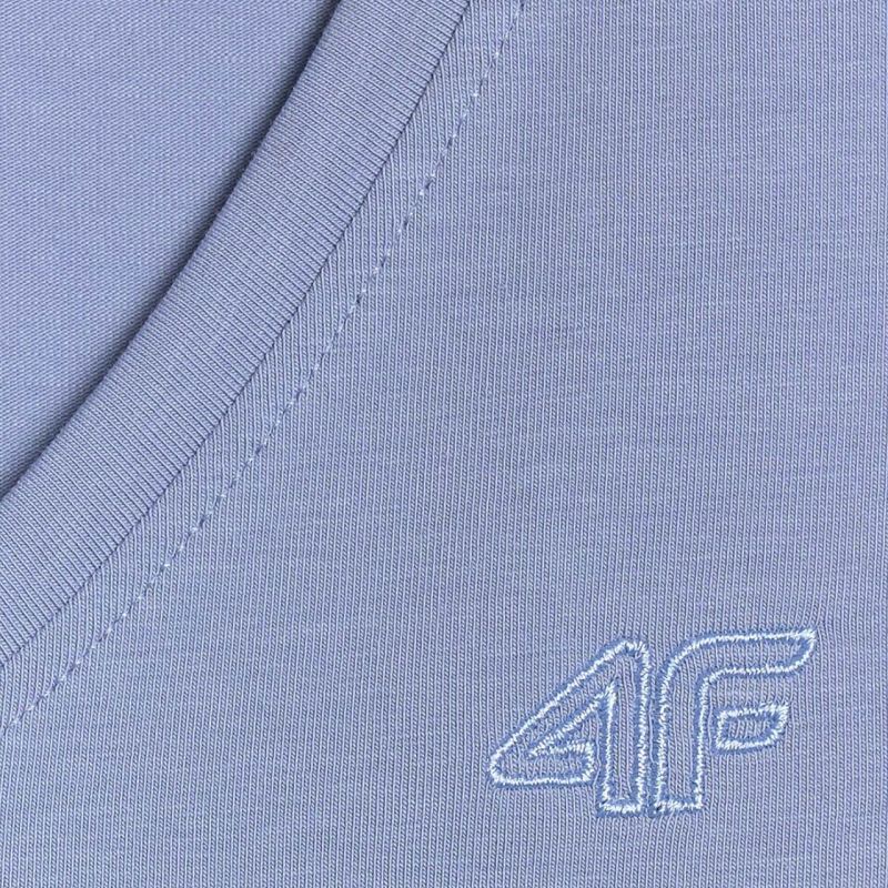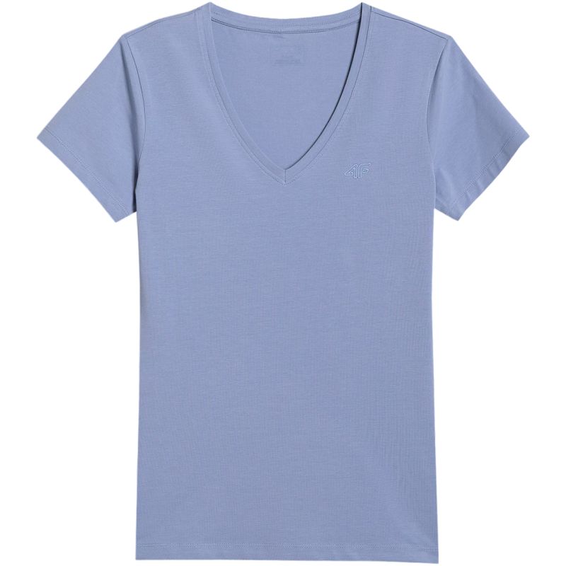 4F Women's T-shirt F2969 Denim 4FWAW25TTSHF2969 32S This 4F women's T-shirt, with its minimalist design, is a must-have for everyday wear. Technical data: · Main material: 95% cotton, 5% elastane · Weight: 180 gsm · Slim fit that adapts to the body · Made mostly of cotton · Stretchy material thanks to the addition of elastane · Solid colors to match many styles · Soft-touch single jersey fabric with a smooth surface · V-neck