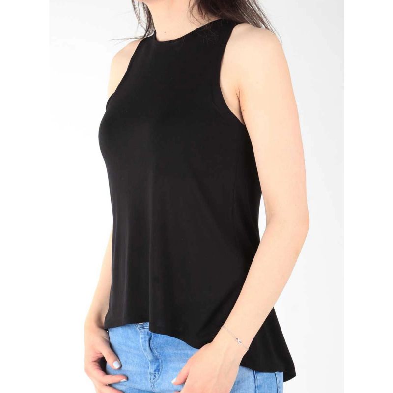 Women's top from the Lee collection. It features a loose fit and a round neckline. It's made of smooth, lightweight, and stretchy fabric. The back is longer than the front.