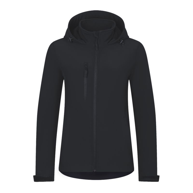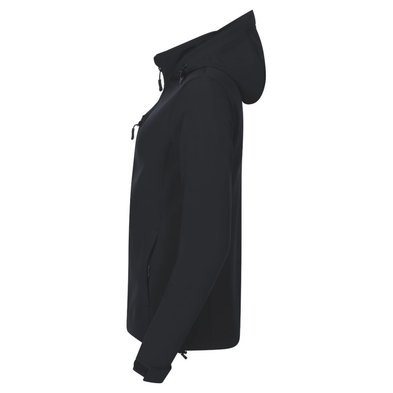 Softshell: 96% polyester, 4% elastane, 100D, 4-Way Stretch, water-repellent finish, inner side: 100% polyester - microfleece, anti-pilling finish without label - ready for rebranding, 2-layer softshell, slightly fitted cut, full-length reverse-zip fastening with chin guard, elastic hood with drawstring and drawstring at bottom, label on the back hem in a neutral size, adjustable sleeve hems with Velcro, pockets with reverse-spiral zipper, chest pocket, slightly extended at the back, inner fleece with anti-pilling finish,